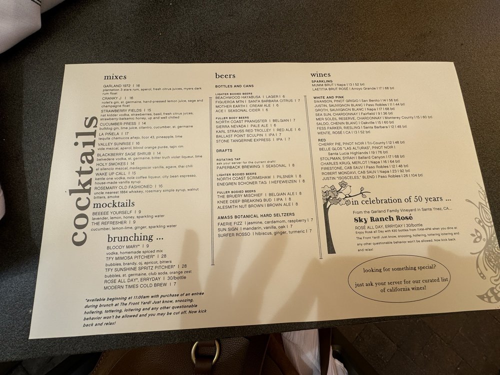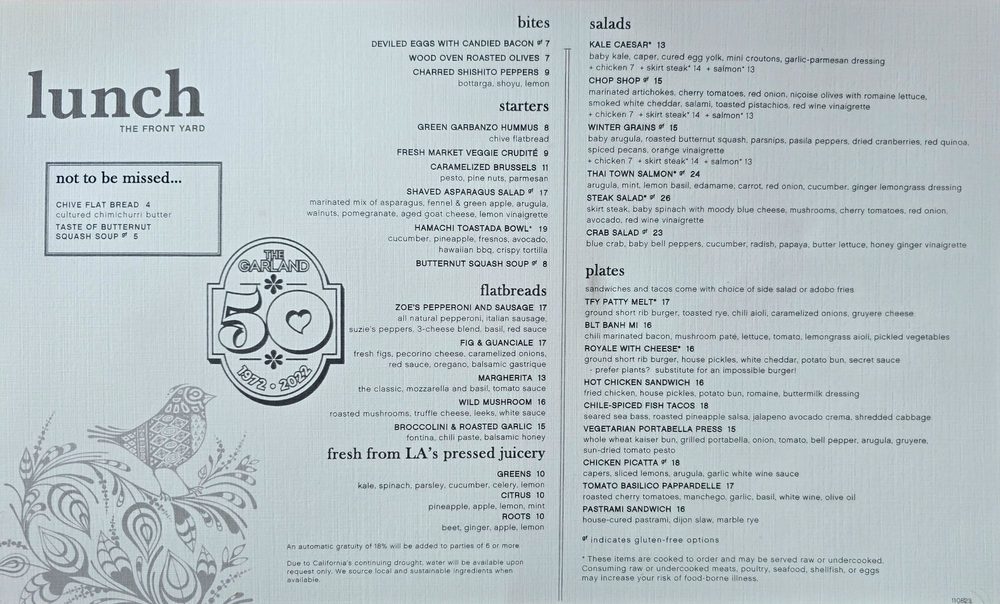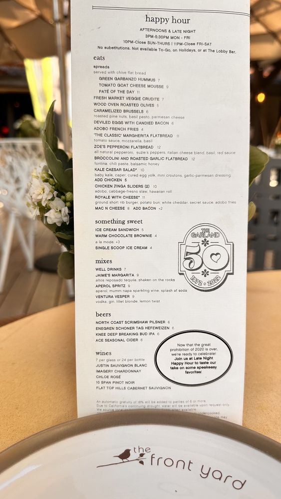 The Front Yard at 4222 Vineland Ave in North Hollywood, CA offers a unique dining experience with a focus on New American cuisine, along with a variety of beer, wine, and spirits. The restaurant provides a trendy, classy, casual atmosphere with various amenities such as outdoor seating, valet parking, and free Wi-Fi. The menu features a diverse selection of dishes, including the popular open face steak & eggs and royale with cheese. Customers rave about the attentive service and recommend trying the hot chicken biscuit, beignets, and banana bread. With options for breakfast, brunch, lunch, and dinner, The Front Yard is a great spot for any occasion, whether it be a family outing or a casual meet-up with friends. The positive reviews highlight the delicious food, vibrant ambiance, and exceptional service, making it a must-visit destination in the area.